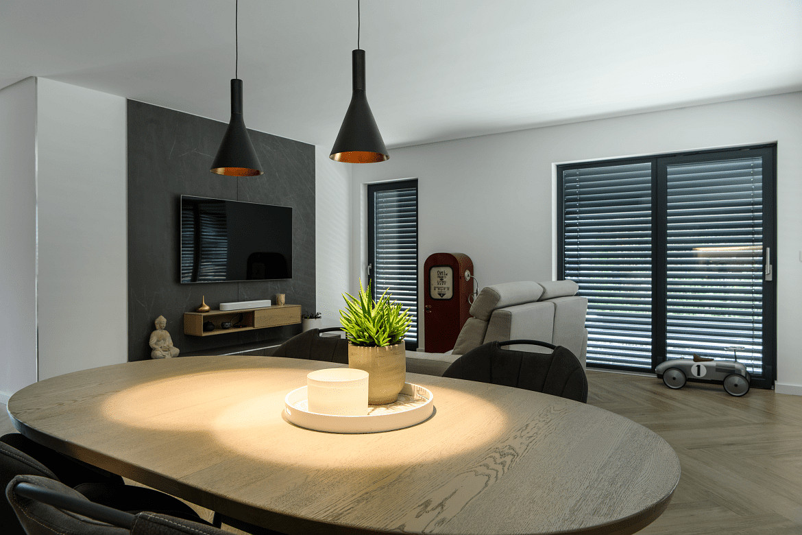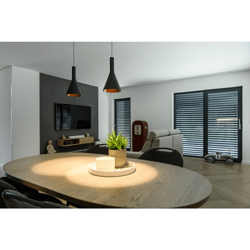 A special highlight of this pendant lamp is the ability to easily switch the light color at the top of the lamp head. You can choose between extra warm white (2700K) and warm white (3000K) to create the perfect atmosphere. This flexibility ensures pleasant lighting that can be optimally adapted to your needs. Thanks to a high color rendering index of over 90Ra, colors are displayed particularly naturally and brilliantly.