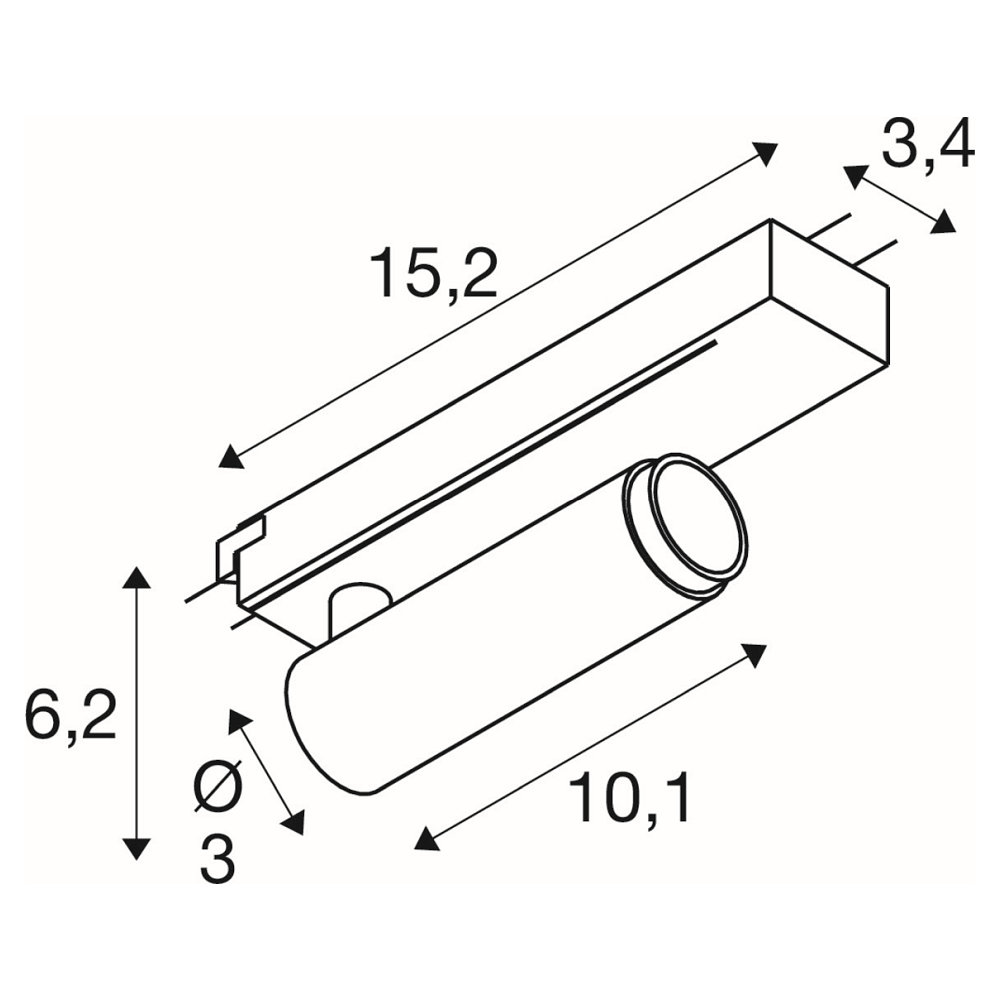 The spotlight comes with a 1-phase adapter and a control gear. The 1-phase track and dimmer are available separately. The spotlight is mounted on a track system and has a 1-phase adapter power connection. Thanks to the different types of dimming (dim to warm, phase cut, phase cut), the light intensity can be individually adjusted.
