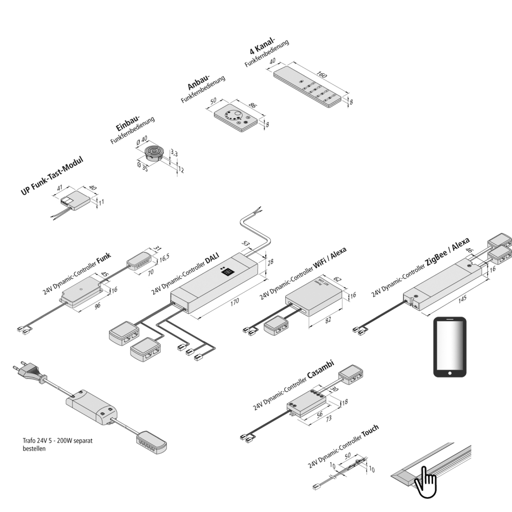 24V Dynamic DALI controller 75W with 4-fold distributor, black