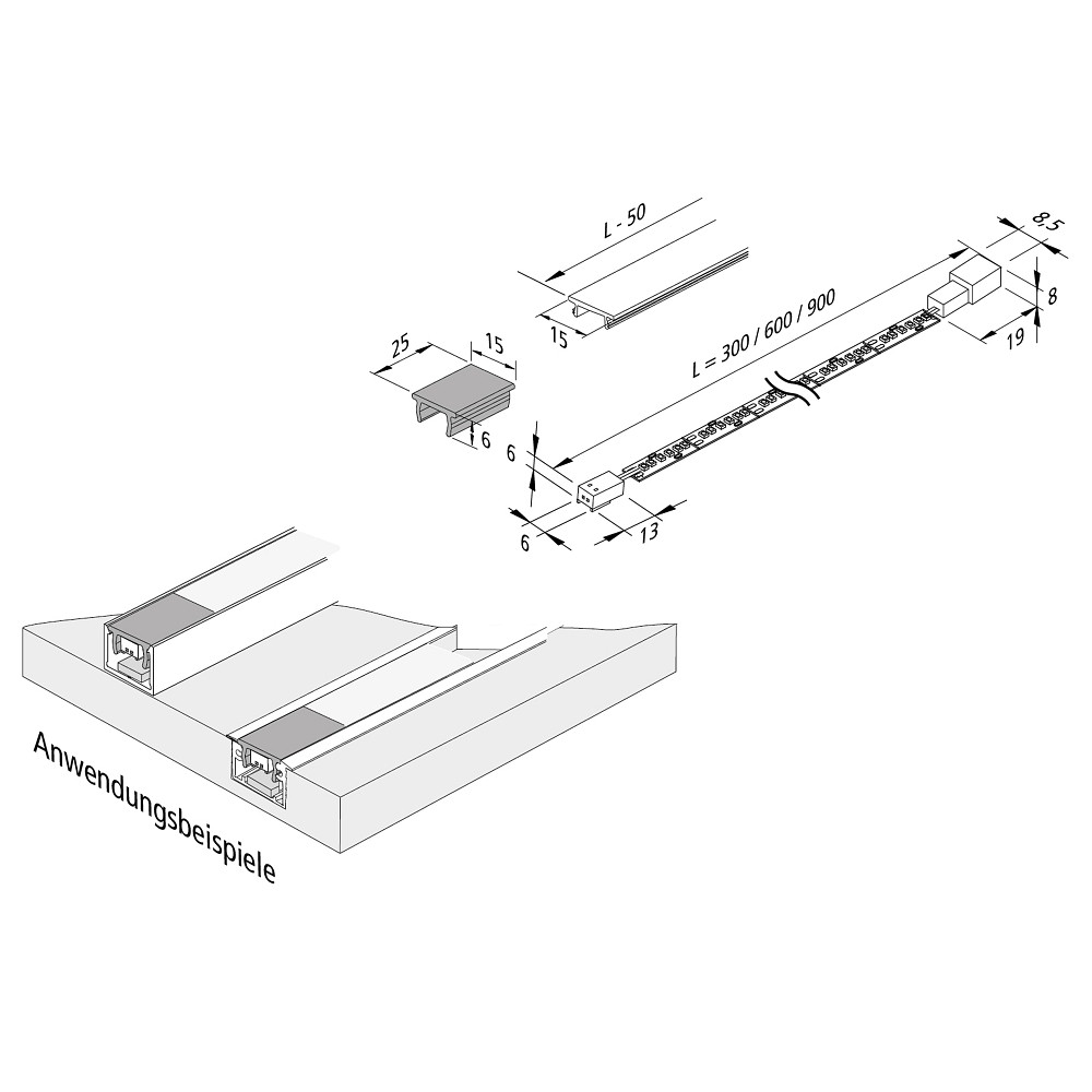 2pc. set of end cap for LED corner profile 19mm, with fastening screws, black