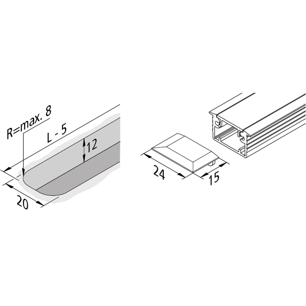 2pc. set of end cap for LED milling mount profile, 24mm, with fastening screws, black
