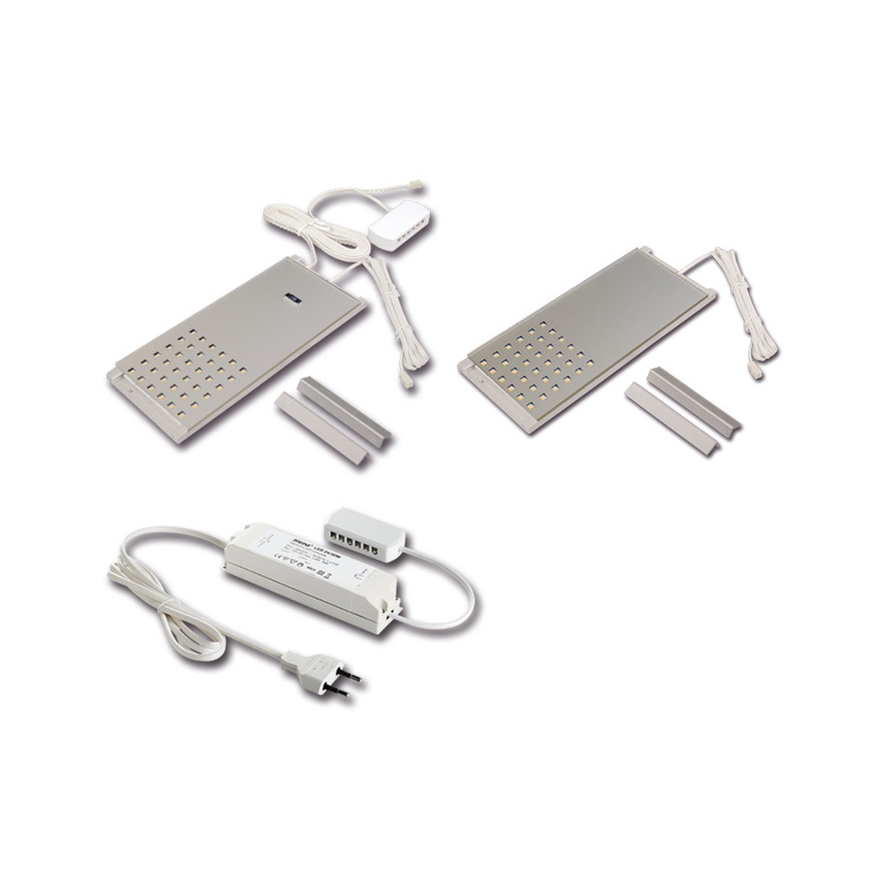 2pc. set of LED L-Pad 7.5W 4000K, with IR-dimmer + LED transformer 24/15W/30W, white