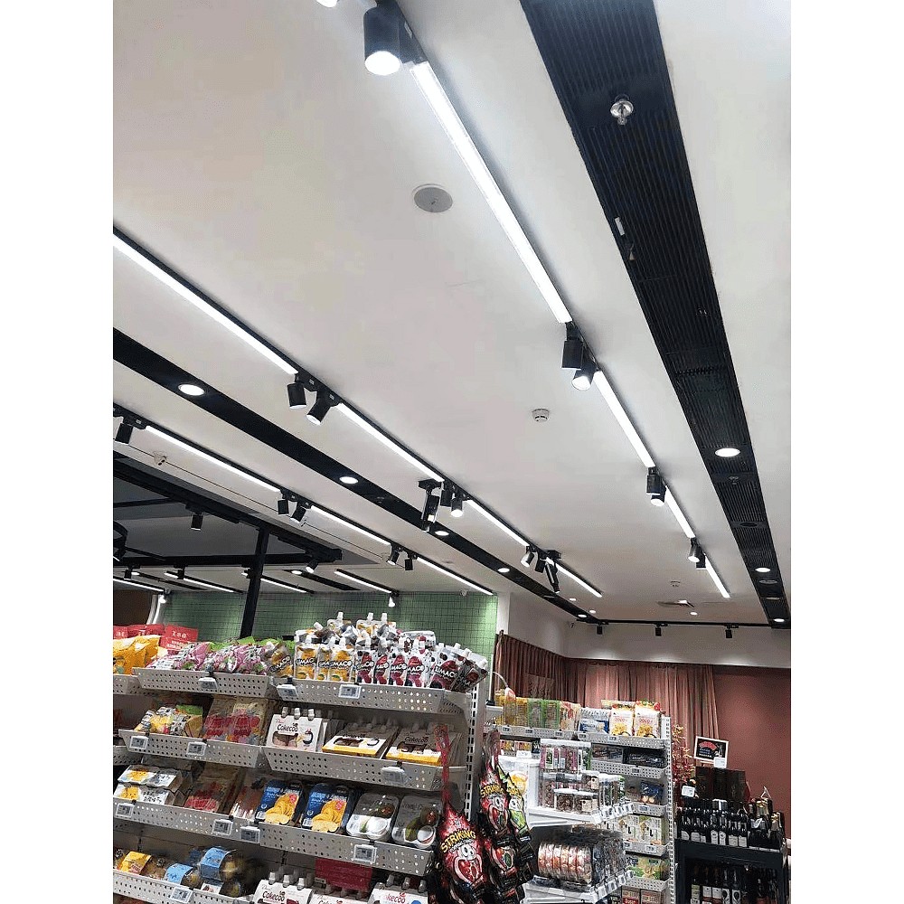 The LED 3-phase luminaire LINEAR PRO 60 from Deko-Light is a high-quality surface luminaire for 3-phase high-voltage track systems indoors. With a power consumption of 14/16/18/20W and a luminous flux of 2850lm, it provides uniform, symmetrical lighting on both sides of the aisle - over the entire shelf height. The diffuse light insert in the middle ensures uniform illumination of the aisle itself.