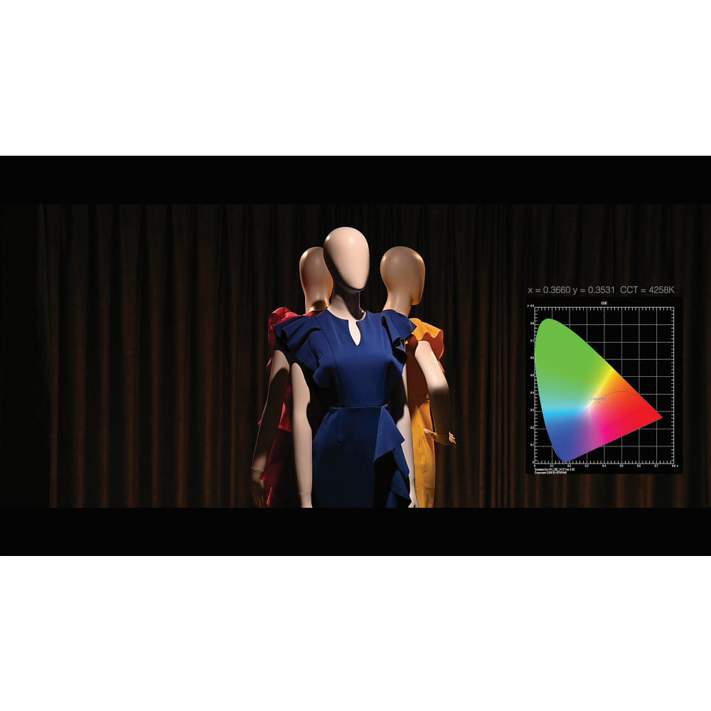 This track spotlight is ideal for modern product presentation in stores, especially for regularly changing products such as fashion, cosmetics, or food. The built-in color sensor automatically adjusts the light color to match the colors of the presented objects to ensure optimal presentation.