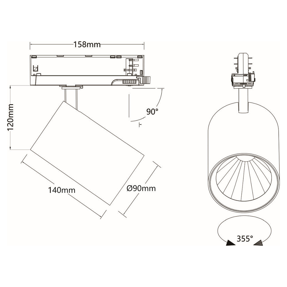 The LED 3-phase track spotlight TRACKSPOT P is a highly efficient and compact track spotlight, specifically designed for standard 3-phase high-voltage track systems. With a power consumption of 35W and a light output of 164.29lm/W, this spotlight offers impressive brightness.