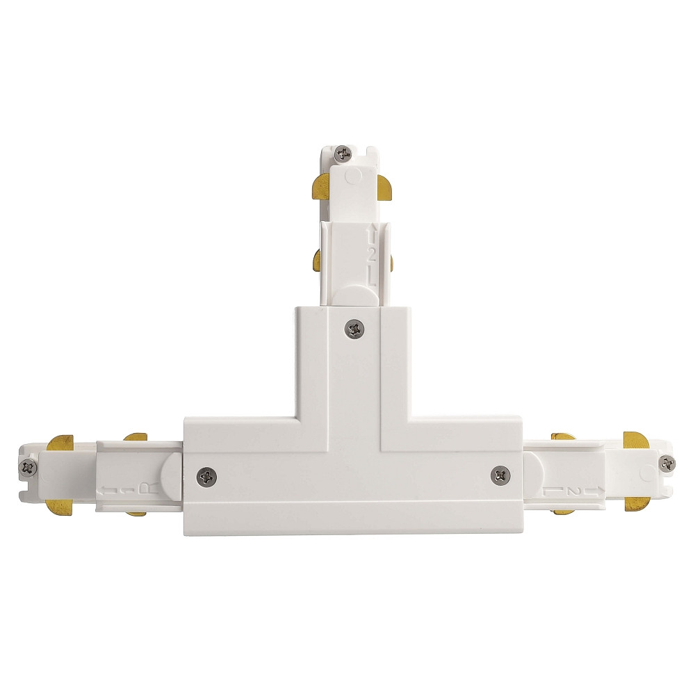 This T-connector from Deko-Light has been specially developed for the 3-phase power track D LINE DALI. It features a change mechanism and is suitable for use on the ceiling as well as on the wall. The product is intended for indoor use only and is white in color.