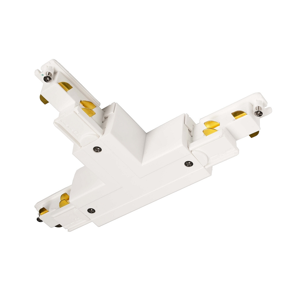 This T-connector for the 3-phase power track is dimmable and suitable for use on ceilings and walls. It is exclusively for indoor use and has an IP protection rating of IP20. The product is made of plastic and has a maximum current load of 48A.