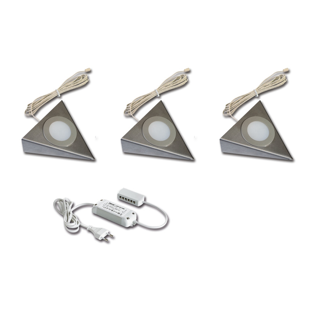 3pc. set of LED triangular under-cabinet luminaire UL 2-LED F + transformer LED 24 / 15W, stainless steel, 3W 4000K
