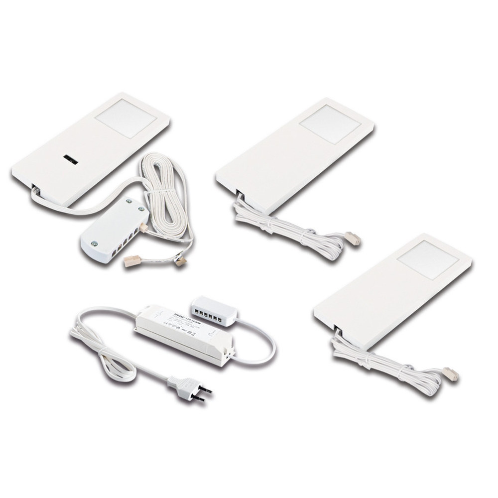 3pc. set of LED under-cabinet luminaire LED Slim-Pad F, IP20, with IR dimmer + transformer LED 24 / 30W, 5W 3000K, white