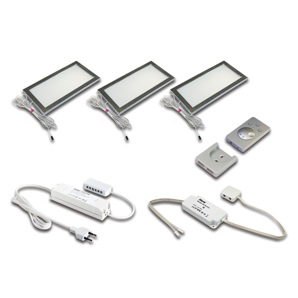 3pc. set of under-cabinet luminaire Dynamic LED SKY 6W + surface mount remote + LED transformer 30W, inox look