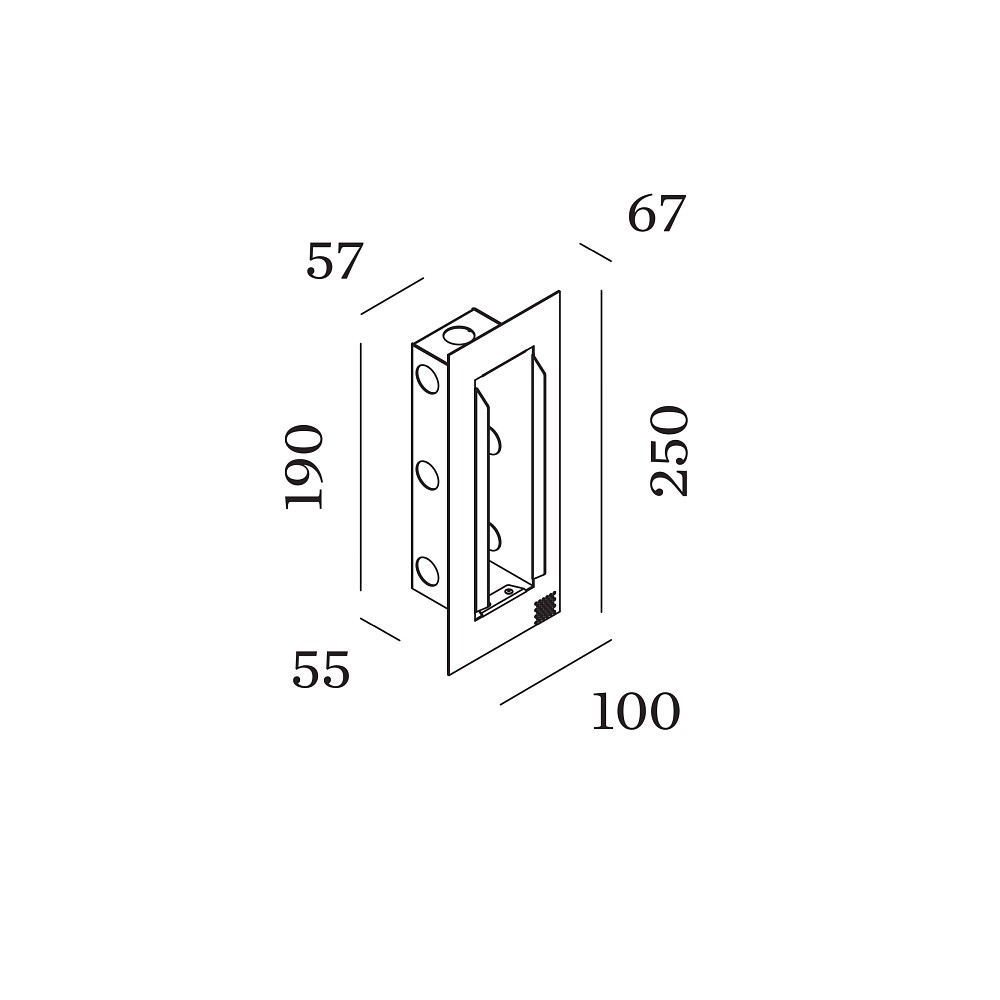 The flush-mount frame measures 25 x 10 x 6.7 cm and has an installation depth of 5.5 cm. The rectangular installation opening is 5.7 cm wide and 19 cm high, allowing the lights to be installed precisely and securely. These exact measurements guarantee an optimal fit and significantly simplify the installation. Thus, the frame is ideally matched to the Wever & Ducré wall recessed lights and ensures reliable mounting.