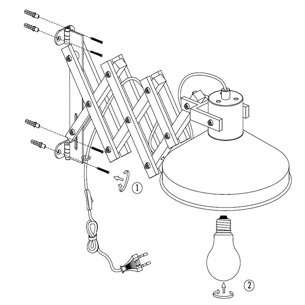 With the appropriate accessories, the light bulbs of the wall light can be dimmed. The switch is already included and the Euro plug cable with a length of 175 cm allows for flexible placement.