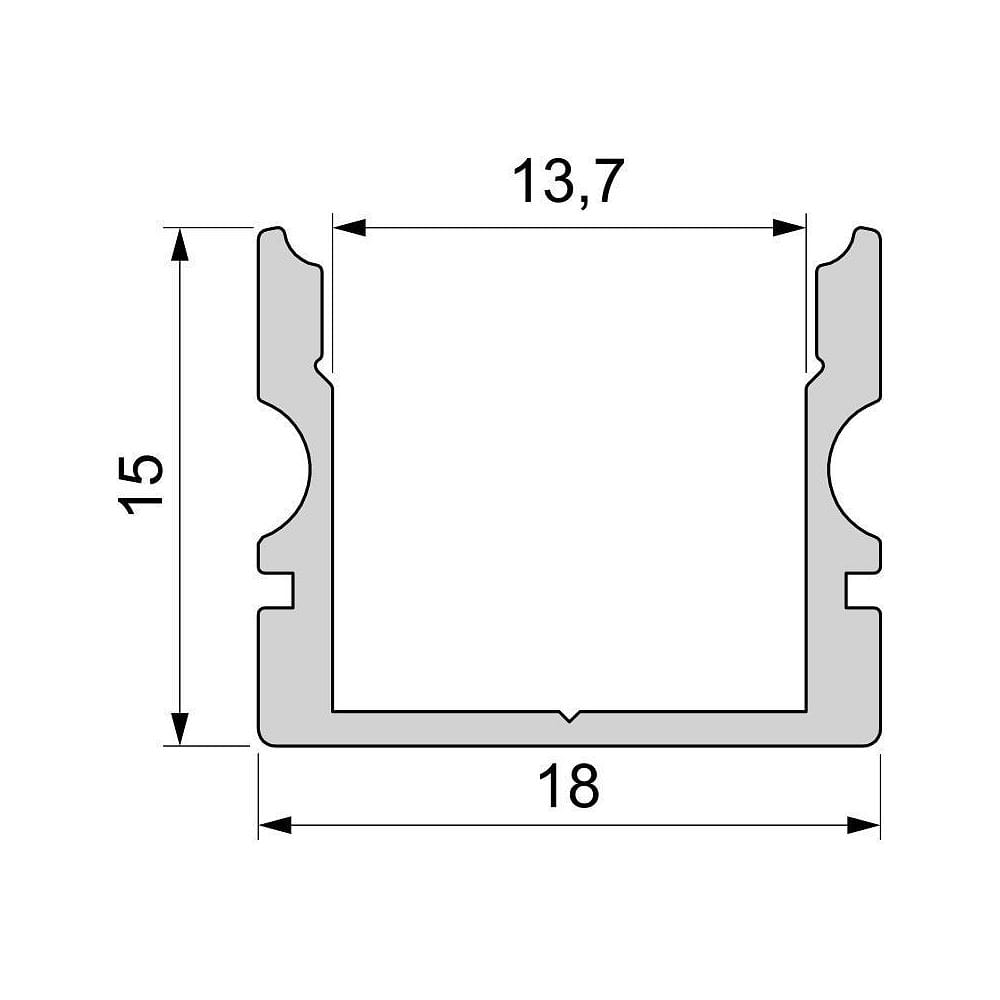AU-02-12, high U-profile for 12 - 13,3 mm LED stripes, 100cm, anodized aluminum