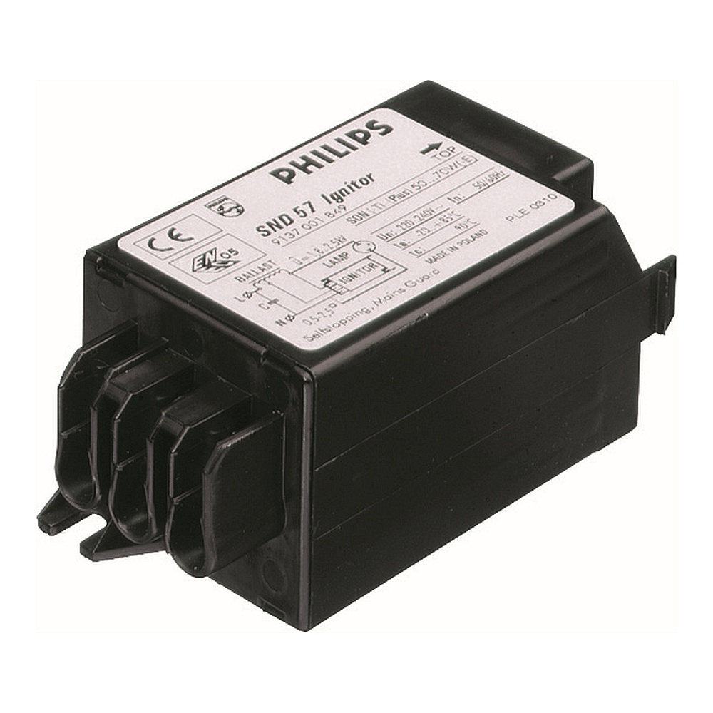 The ballast SND 57 is easy to install and ready for immediate use. With its simple handling and clear instructions, you can quickly and easily put it into operation. Trust in the quality and reliability of Philips for your lighting needs.