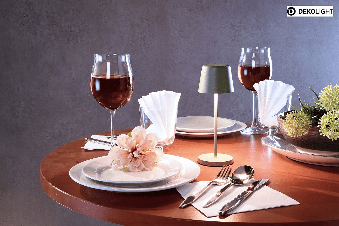 The battery table lamp is made of robust aluminum die-casting and polycarbonate (PC). It has an IP65 protection against all-round splash water and dust as well as an IK04 protection against accidental impacts and falls. The lamp is suitable for both indoor and outdoor areas and can be placed on furniture or tables.