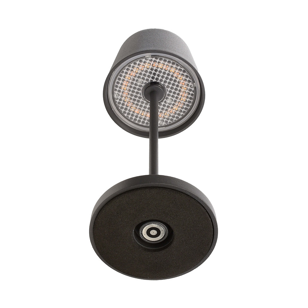 The battery table lamp is made of high-quality aluminum die-cast and polycarbonate (PC) and is protected against water jets and dust (IP65). The IK04 protection also ensures high impact and shock resistance.