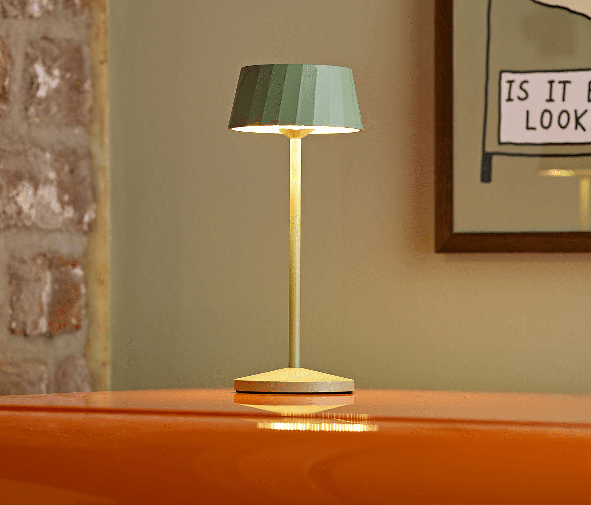 battery table lamp FACETTA IP44, sage green dimmable