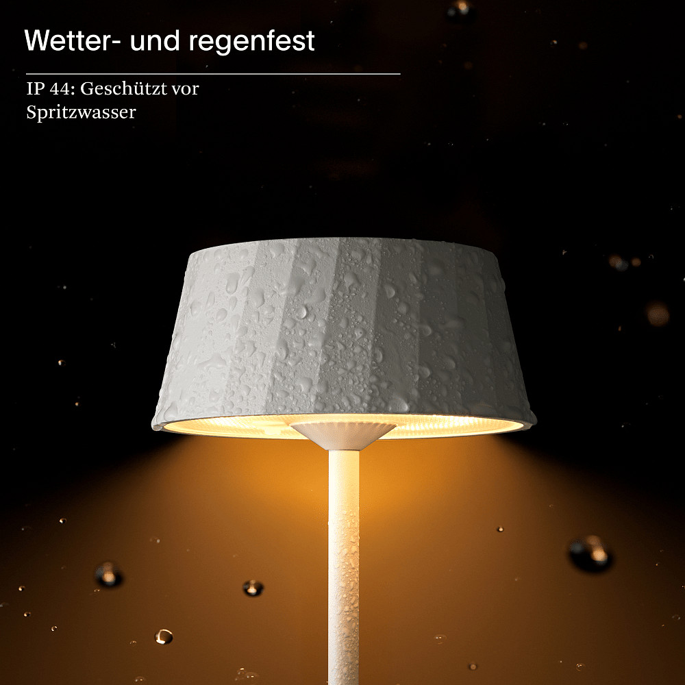 With protection class IP44, the FACETTA battery table lamp is resistant to splashing water and dust. This increases the product's durability and ensures safe use under various conditions. The high-quality workmanship and robust choice of materials guarantee reliable use over many years. Additionally, the integrated touch dimmer allows for easy and intuitive control without annoying switches.