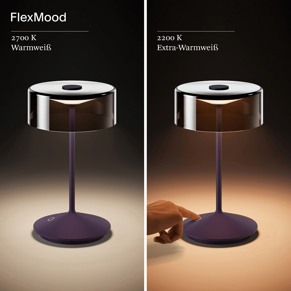 Thanks to the integrated touch dimmer, you can adjust the brightness continuously and switch the light color from 2200K to 2700K (Flex-Mood). A simple touch sensor on the lamp base allows for easy switching on and off.