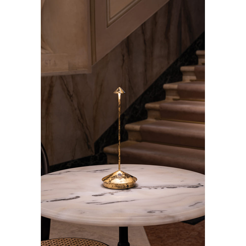 The LED battery table lamp PINA TAVOLO PRO is made by the renowned brand Zafferano and is available in black and leaf gold colors. With an energy efficiency class G, it is not only environmentally friendly but also cost-effective to operate. A practical and stylish lighting element for any room.