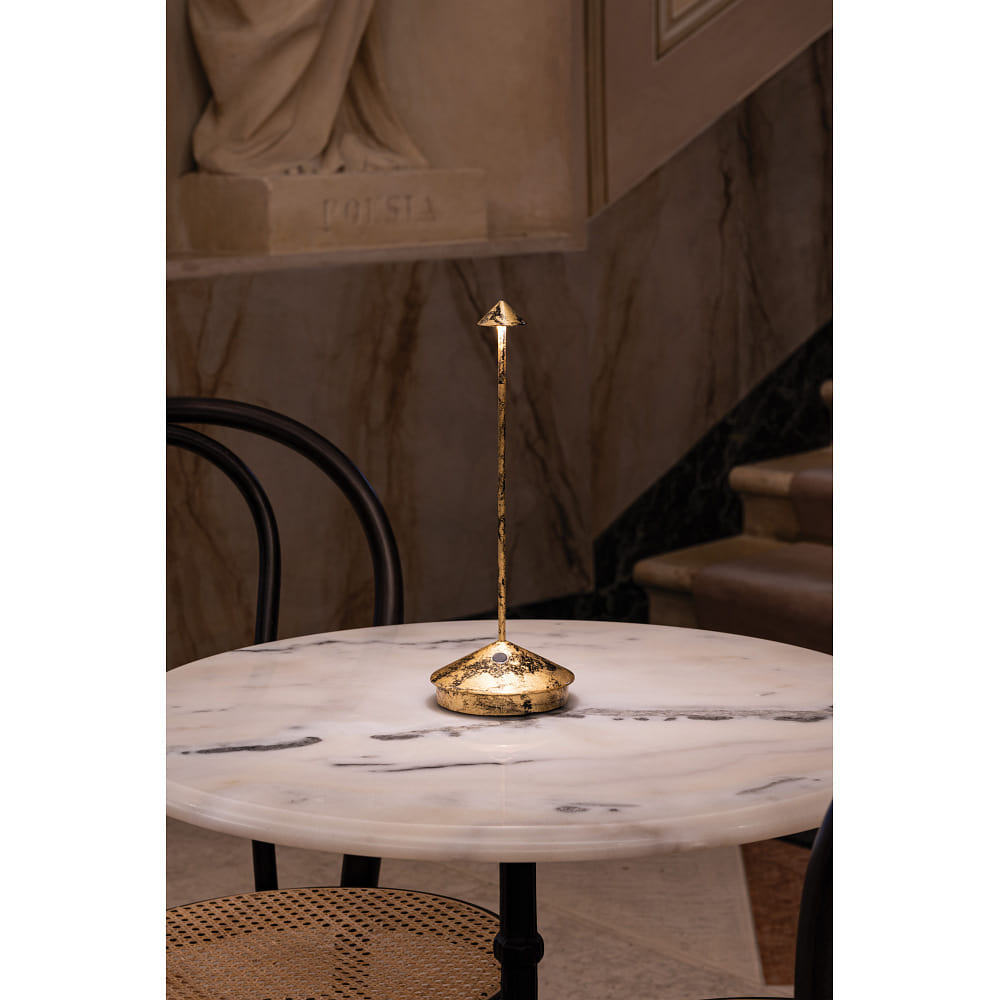 LED Battery Table Lamp PINA TAVOLO PRO, 2.2W, 2200/2700/3000K, 178/204/206lm, IP54, black / leaf gold