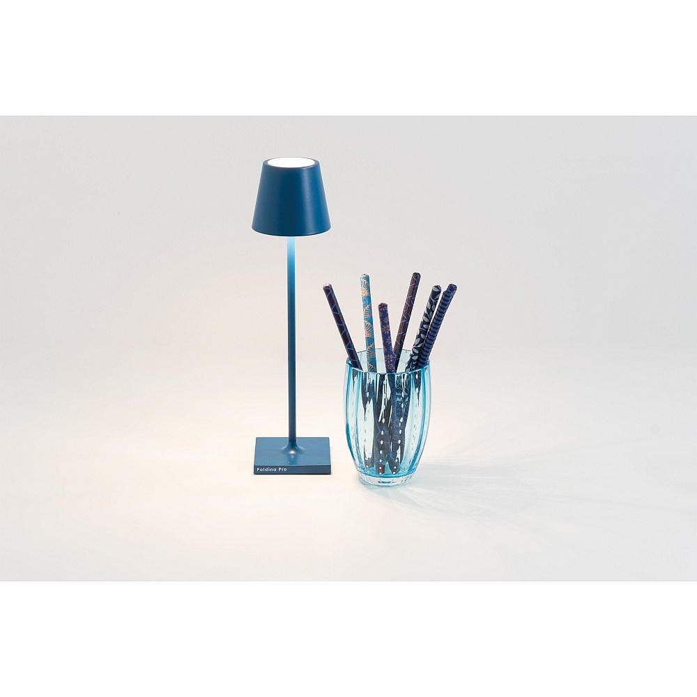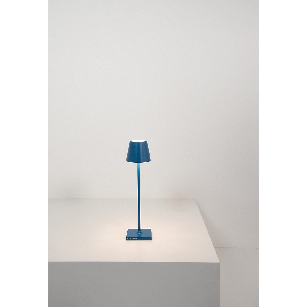 battery table lamp POLDINA MICRO IP65, blue dimmable