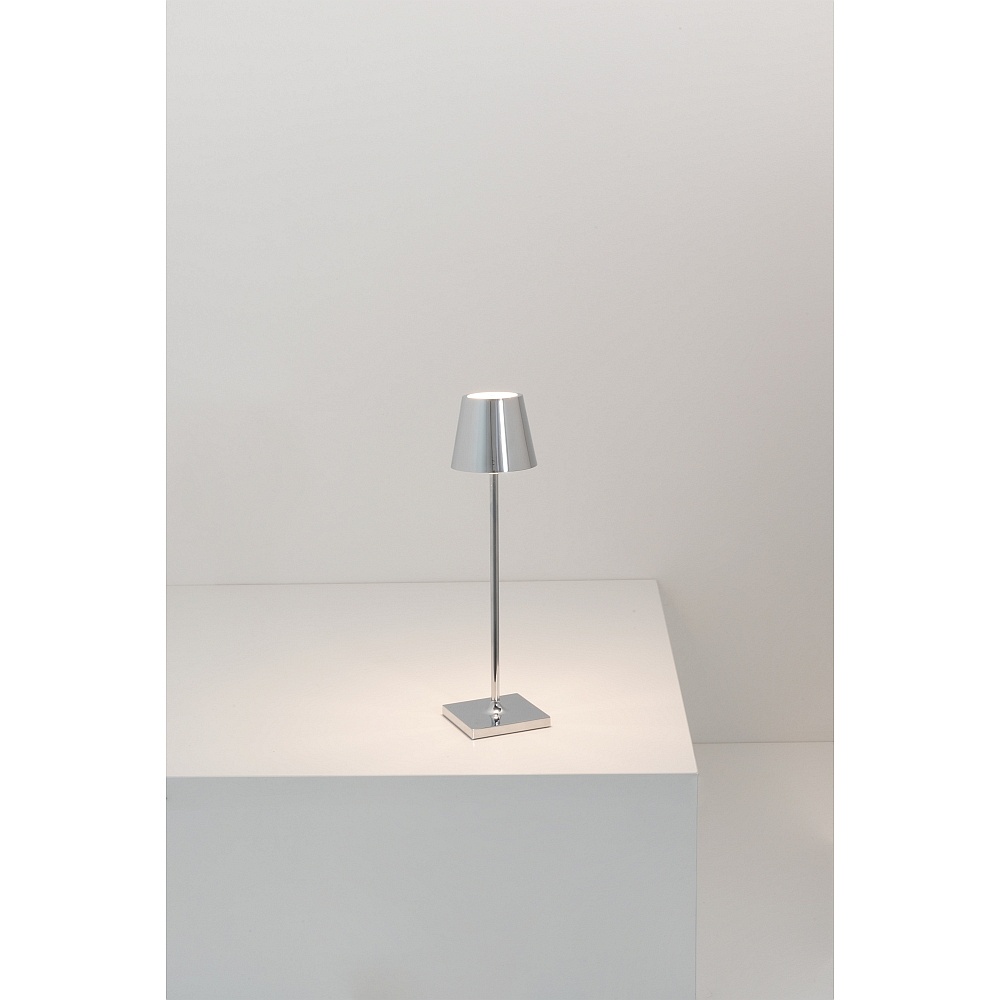 battery table lamp POLDINA MICRO IP65, chrome, glossy dimmable