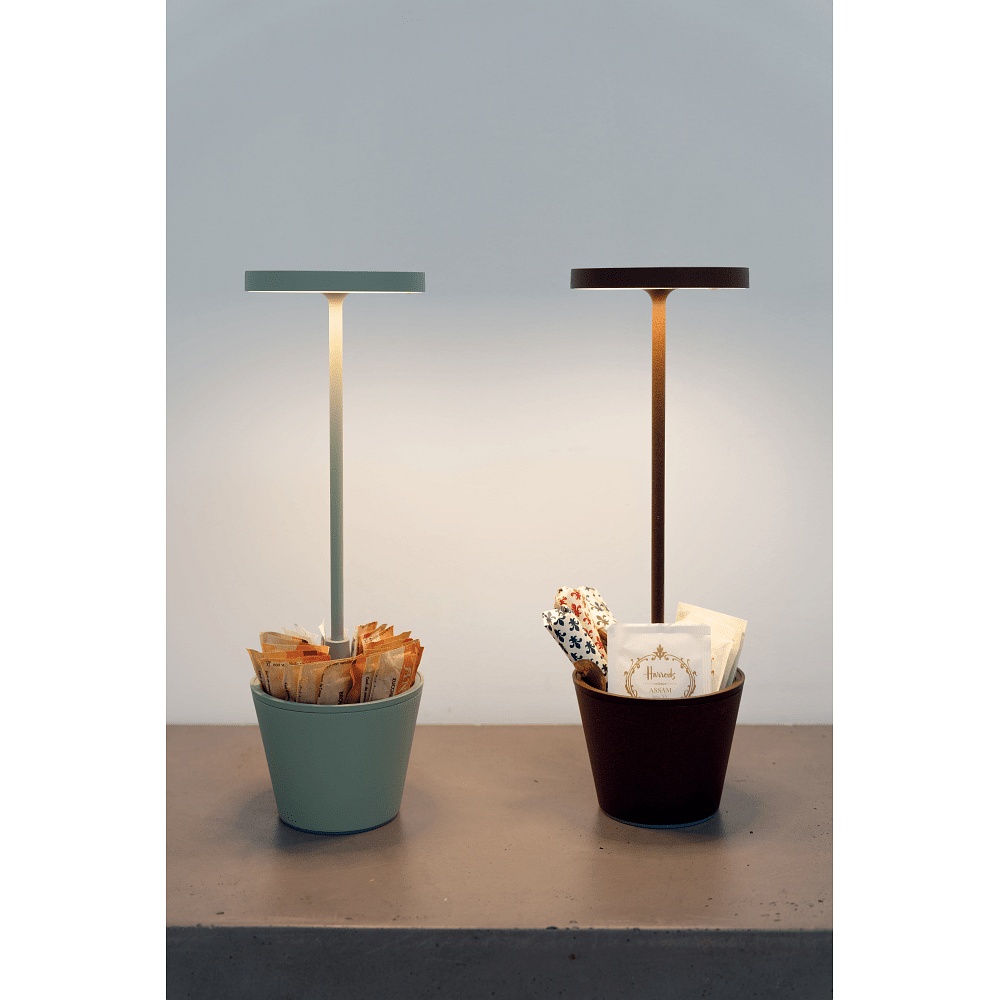 Thanks to the integrated battery, the table lamp is cordless and portable, allowing you maximum flexibility in placement. The lamp can shine for up to 12 hours and fully charges in just 6-7 hours. The multipurpose tray at the bottom can be used for various purposes, such as a plant pot or for storing decorative items.