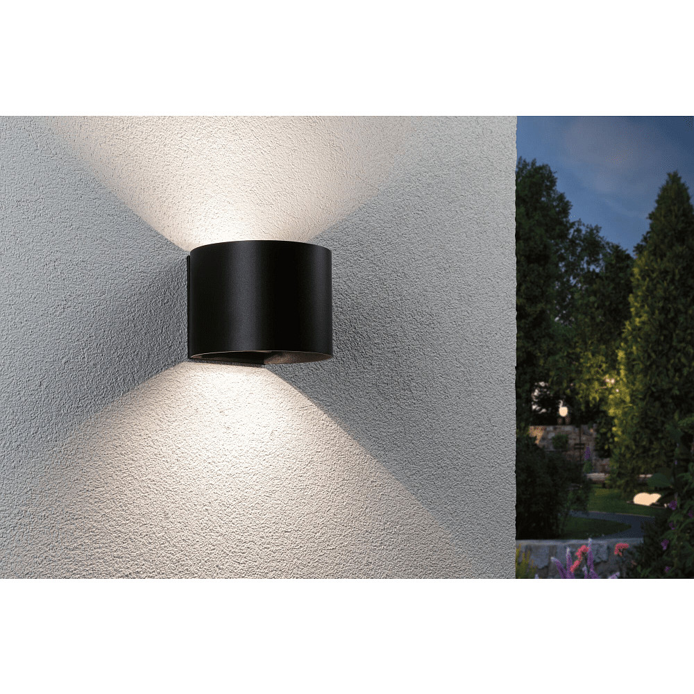 Paulmann battery wall luminaire NYORA UP&DOWN round IP44, black battery wall luminaire NYORA UP&DOWN round IP44, black