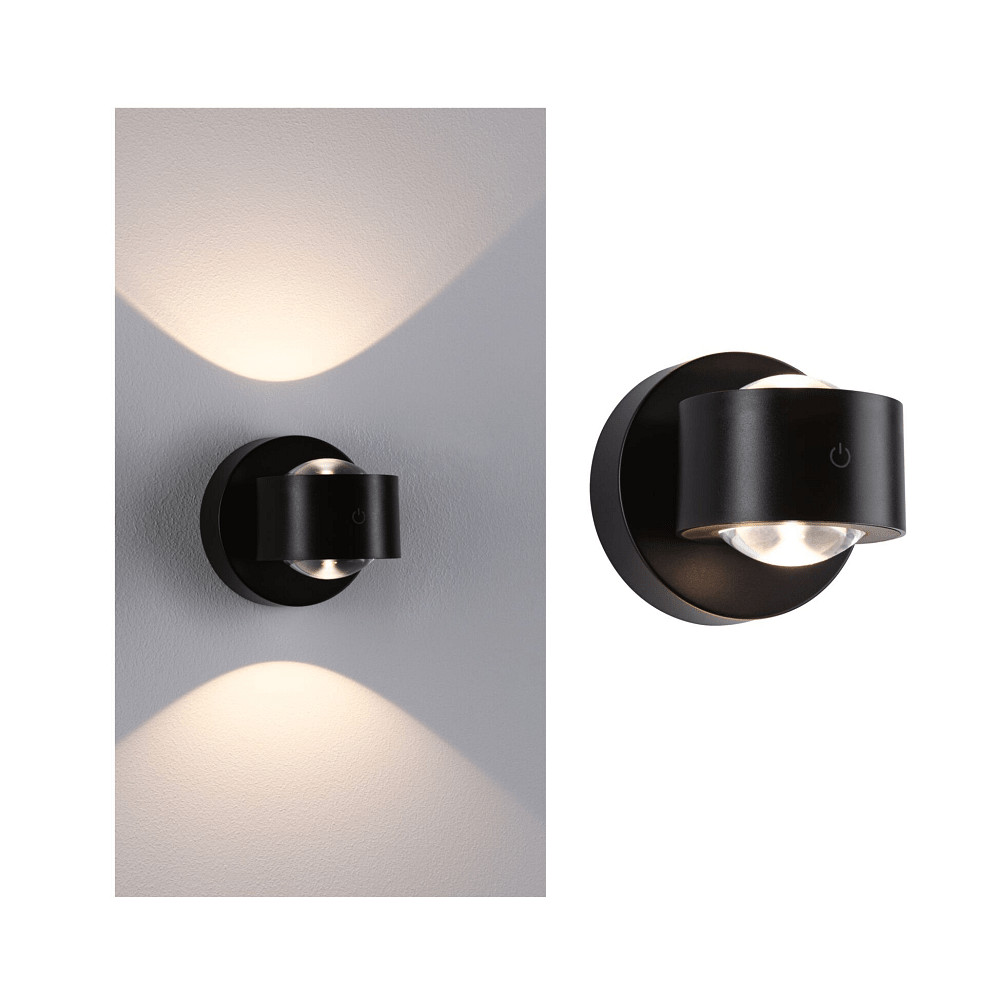 battery wall luminaire ZORIK UP&DOWN with USB connection, with lens optics, magnetic mounting IP44, black dimmable