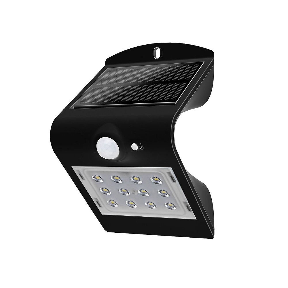 Blulaxa® LED Solar Outdoor wall luminaire with PIR sensor, IP65, 1.5W 3000K 220lm 120°, inkl. Accumulator, black