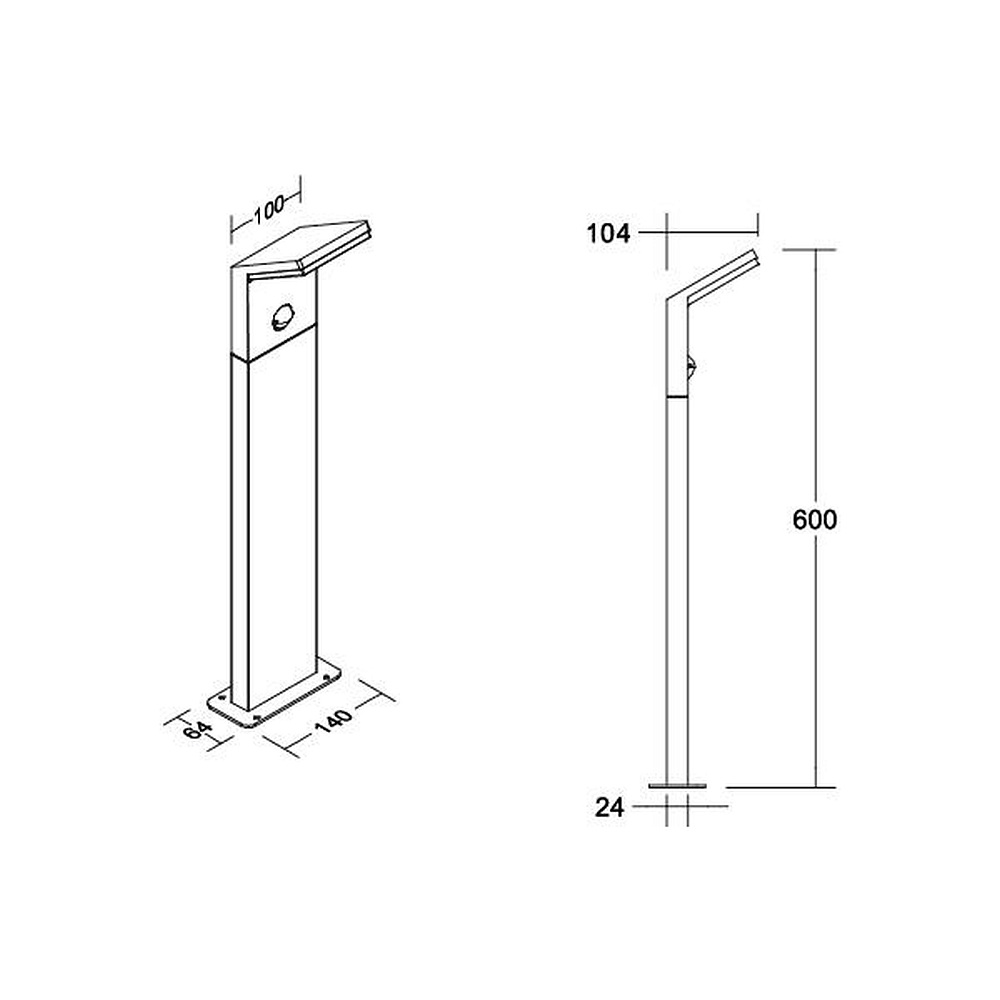 The bollard light is made of durable aluminum and is long-lasting and low-maintenance. The size of 14 x 10.4 x 60 cm makes it a discreet yet effective lighting solution. The installation is easy and straightforward thanks to the included operating device.