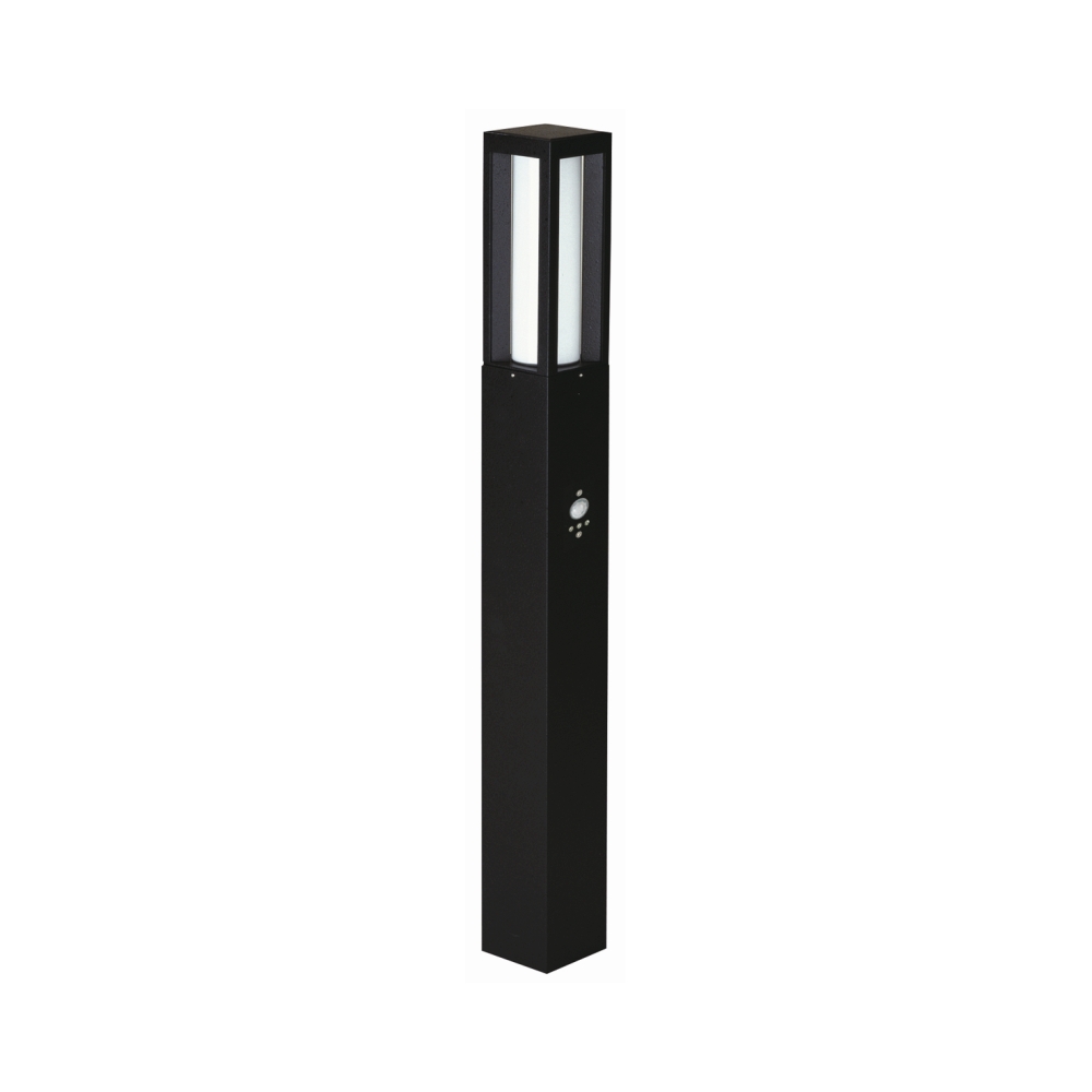 Bollard light Type No. 2066 with motion sensor 90°, IP44, height 90cm, E27 max. 20W (LED), cast alu / opal glass, black matt