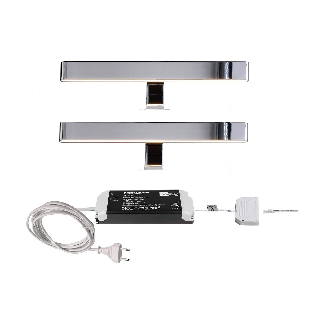 Bundle of 2 - LED furniture luminaire MIRROR LINE I, IP44, 12V DC, 8W 3000K 380lm 120°, chrome