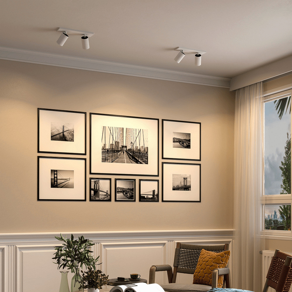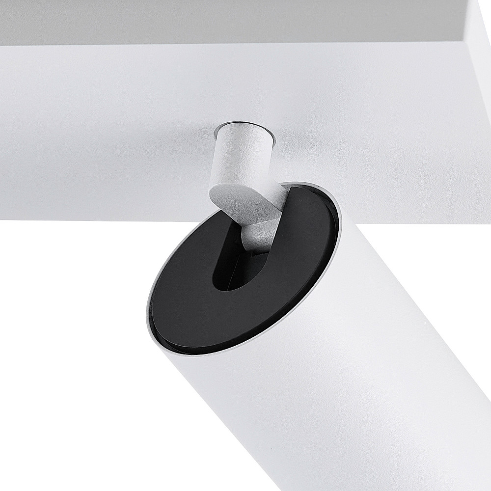 The two lamp heads of the CAN TILT SQUARE can be rotated and tilted separately, allowing the light beams to be individually directed. This enables you to focus the lighting specifically on certain areas or objects. This flexibility makes the spotlight especially practical and versatile. The angular base plate provides a modern look and stable ceiling mounting.