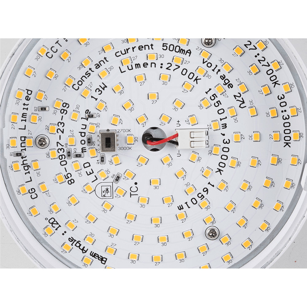 This luminaire offers high-quality light with a color rendering index of 90-100 Ra, making colors appear particularly natural and vivid. The color temperature can be adjusted stepwise between warm white (2700K) and neutral white (3000K), enabling you to optimally adapt the light to different situations. With a luminous flux of 400 lumens, the luminaire provides sufficient brightness with pleasant light distribution.