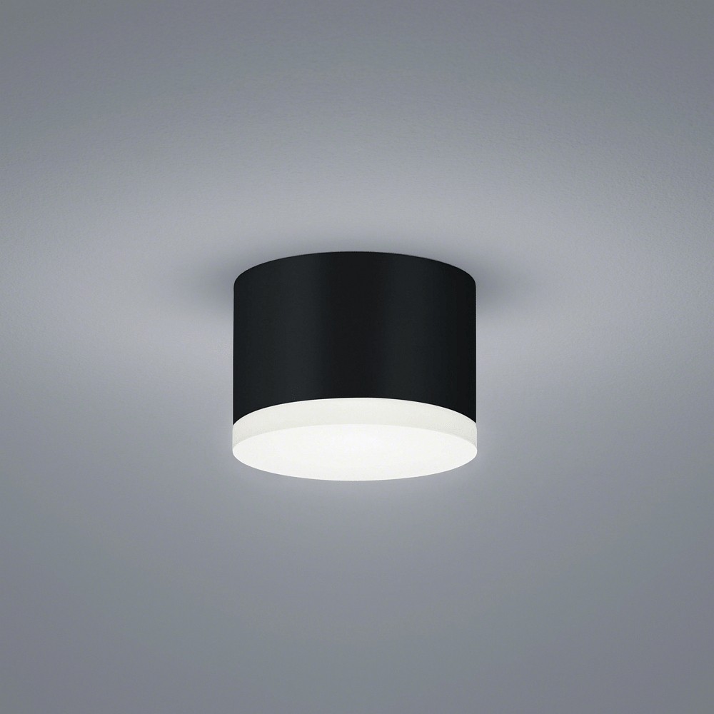 The ceiling light is made of high-quality aluminum and acrylic, featuring a modern design in matte black. The round shape and diffuse light distribution ensure even illumination of the room. With a size of Ø 10 cm and a height of 7 cm, the light fits perfectly on any ceiling.