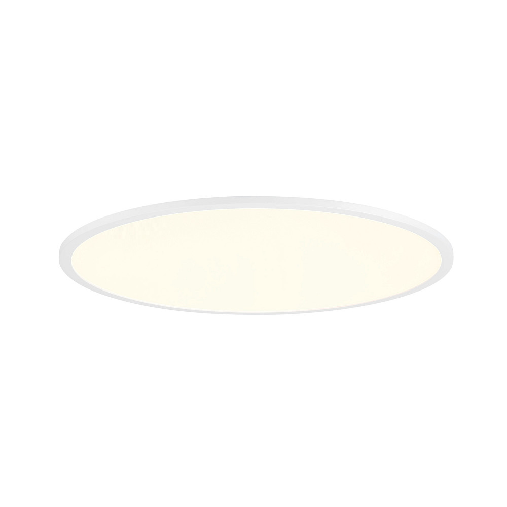 The LED ceiling light PANEL 60 from SLV impresses with its high energy efficiency combined with strong light output. With a power consumption of only 29 watts, it produces a luminous flux of 3050 lumens, which corresponds to a luminous efficacy of over 105 lumens per watt. This ensures bright and even illumination while keeping power consumption low. The round shape with a diameter of 60 cm and an installation depth of only 7 cm allows for a discreet and modern integration into various rooms.
