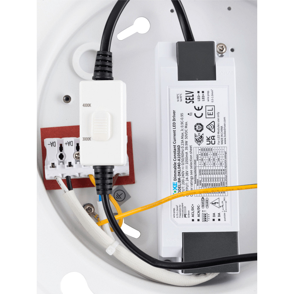 The ceiling light is equipped with a high-quality LED driver that operates with constant current and is included in the scope of delivery. The average lifetime of the lamp is an impressive 50,000 hours, guaranteeing long usage without frequent replacement. With a mounting depth of only 7 cm and a mounting opening diameter of 20 cm, the luminaire can be installed space-savingly.