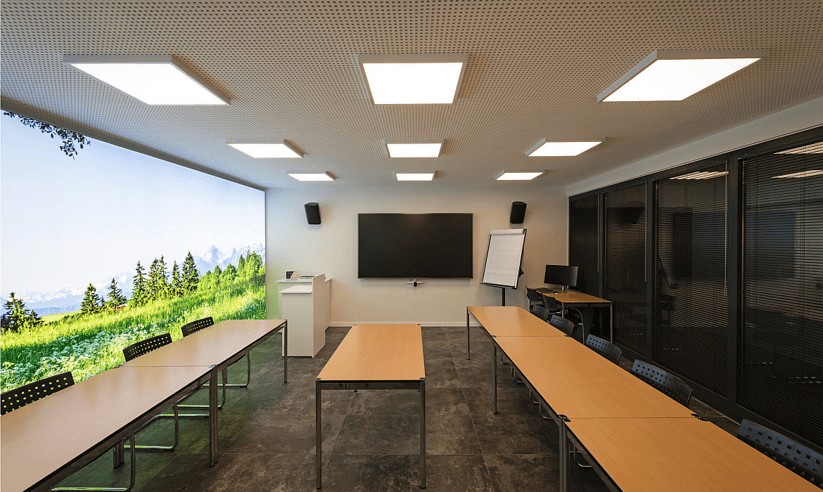 This ceiling light is ideal for use in various indoor areas and is available with accessories such as operating devices, light color switch, and dimmer. With a symmetrical, homogeneous light distribution and a glare rating of <19, it is also suitable for screen workstations.