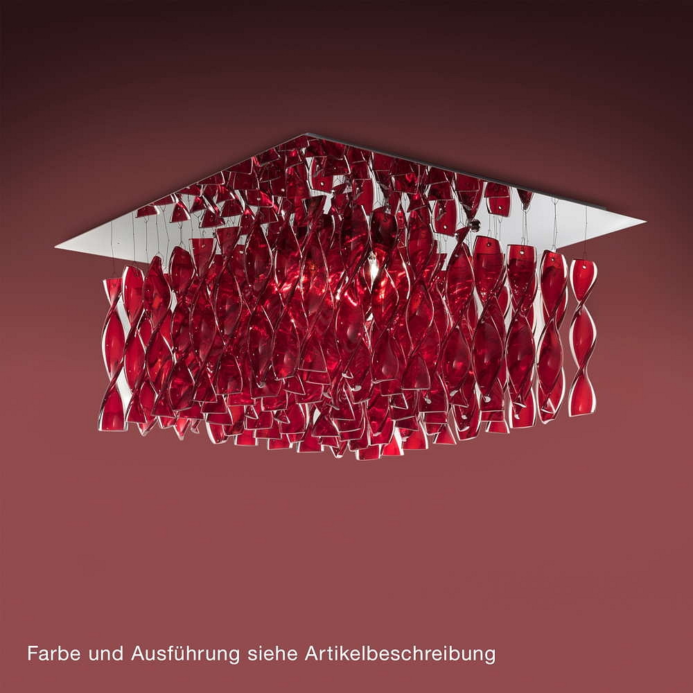 The ceiling light features four E27 sockets, where you can use dimmable light bulbs with a power of up to 100W. The handmade double-layered Murano glass creates unique lighting effects and adds a touch of elegance to the room.