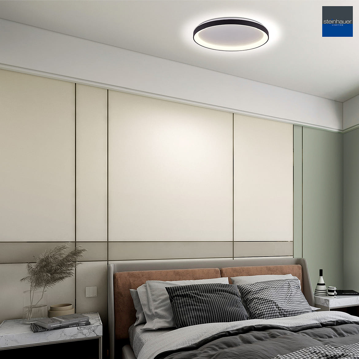 The LED Ceiling Light RINGLEDE Ø 38cm from Steinhauer is a modern and stylish lighting solution for your living space. With a power of 30W and a warm white light output of 2400lm, it creates a pleasant atmosphere.