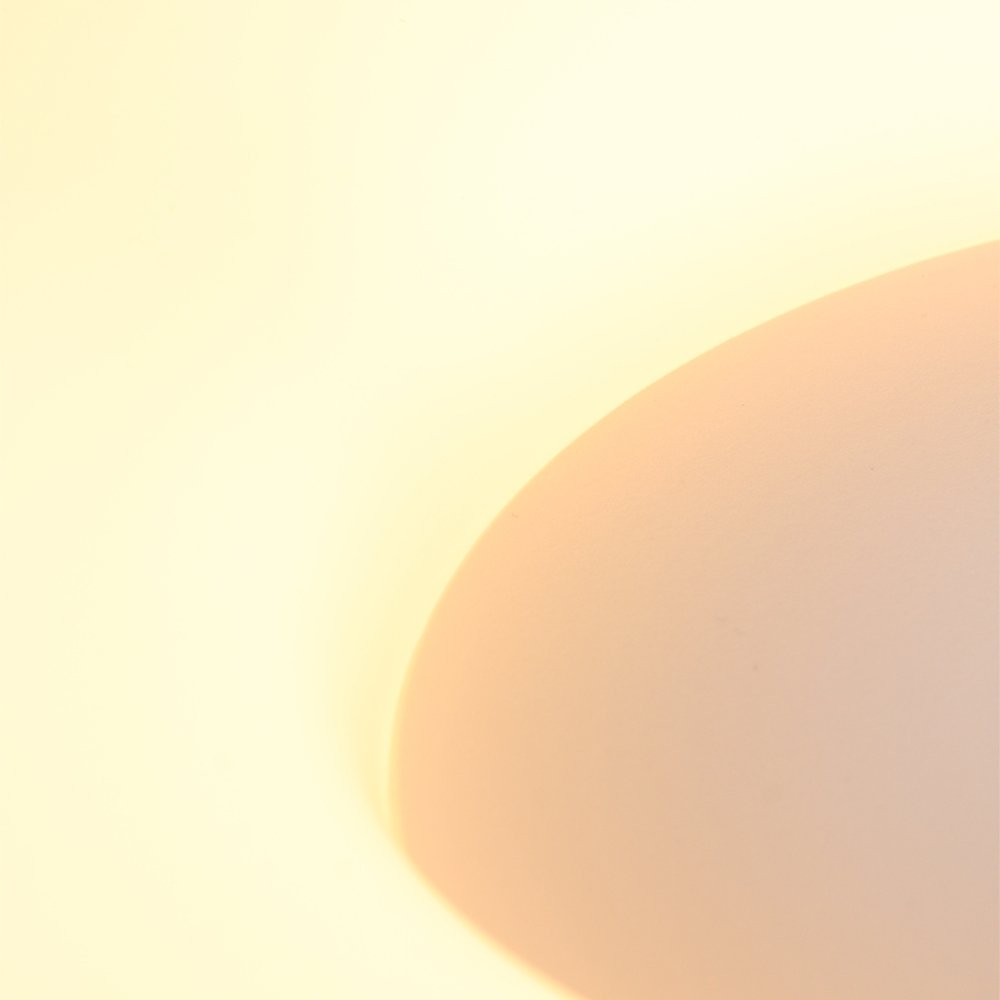 The high-quality ceiling light is made of plastic and metal and weighs only 1.7 kg. It is installed as a surface-mounted fixture on the ceiling and has a ceiling connection with a diameter of 30 cm. The power connection is made via a clamp connection.