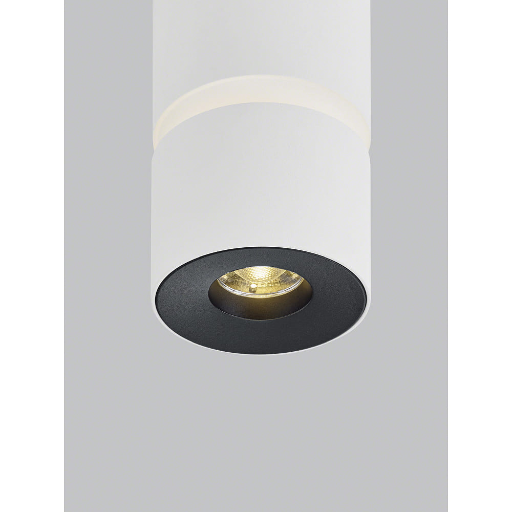 The ceiling light ROK from Helestra is a puristic, cylindrical indoor surface-mounted ceiling light that emits both direct and indirect light. With a power consumption of 10W and a luminous flux of 1020lm, it provides extra warm white light with a color temperature of 2700K and excellent color rendering of CRi >90Ra.