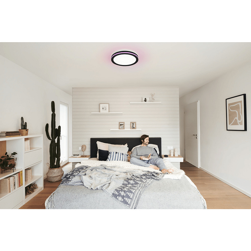 The ceiling light features 28 RGB + Tunable White LEDs, producing a light output of 750lm. With a continuous adjustment of the color temperature from 3000-6500K, you can customize the light color from warm white to cool white according to your preferences. The color rendering index of 80Ra ensures natural and vivid colors.
