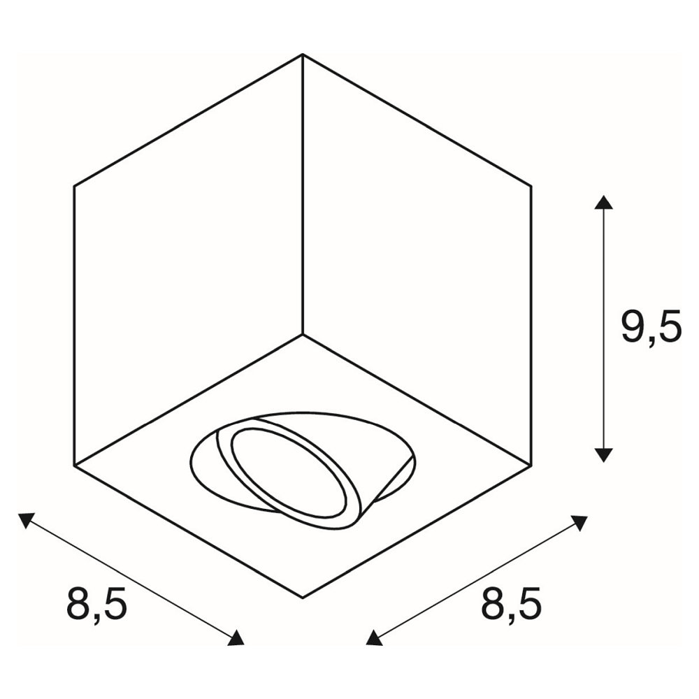 With dimensions of L/W/H: 8.5/8.5/9.5 cm and a weight of 0.96kg, the surface-mounted luminaire is easy to install. The swivel range of 30° and the rotation range of 100° allow for flexible positioning of the light.