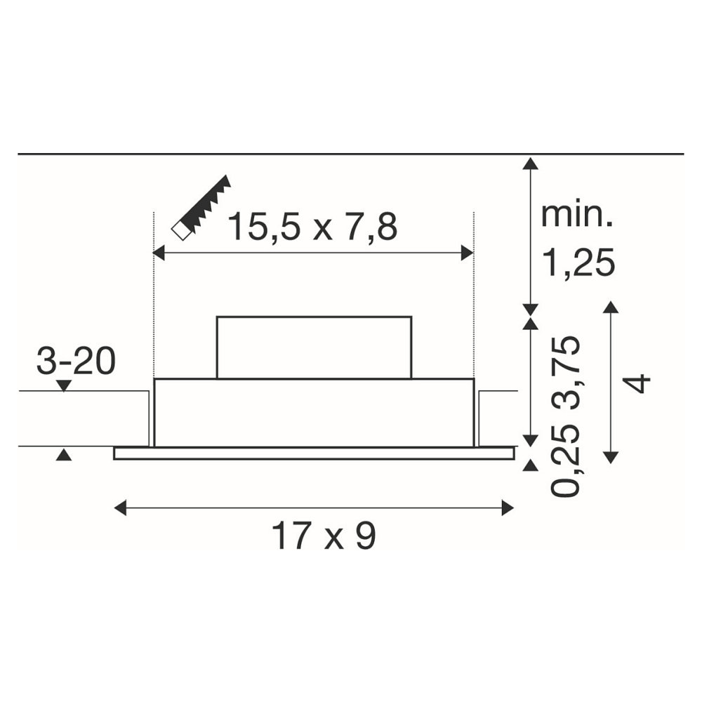 ceiling recessed luminaire NEW TRIA® 155 PHASE 2 flames, rigid, square IP20, black dimmable