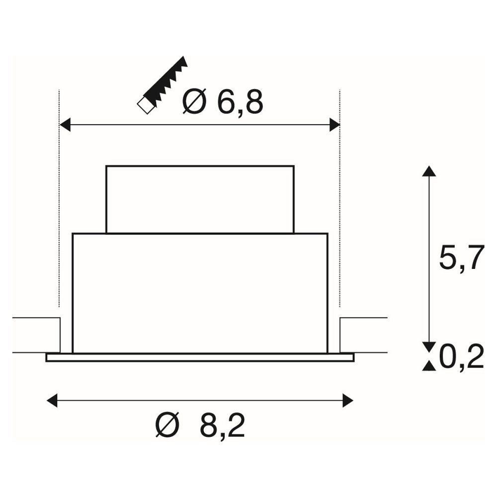 This recessed ceiling light is dimmable via both leading edge and trailing edge phase control. The installation is easy through a circular cutout of Ø 6.8 cm and an operating voltage of 220-240V~. A light bulb is included in the delivery.