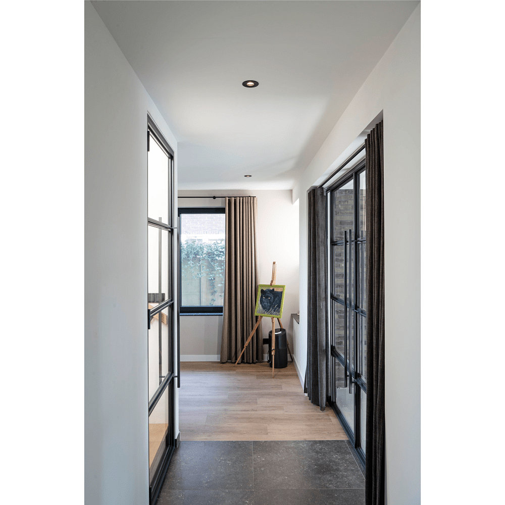 The round recessed ceiling light NEW TRIA® 75 is an elegant and modern lighting element for your home or office. With a maximum power of 10W and a GU10 base, it provides bright light and an energy-efficient lighting solution. The black color and aluminum material give the light a timeless design that fits various interior styles.