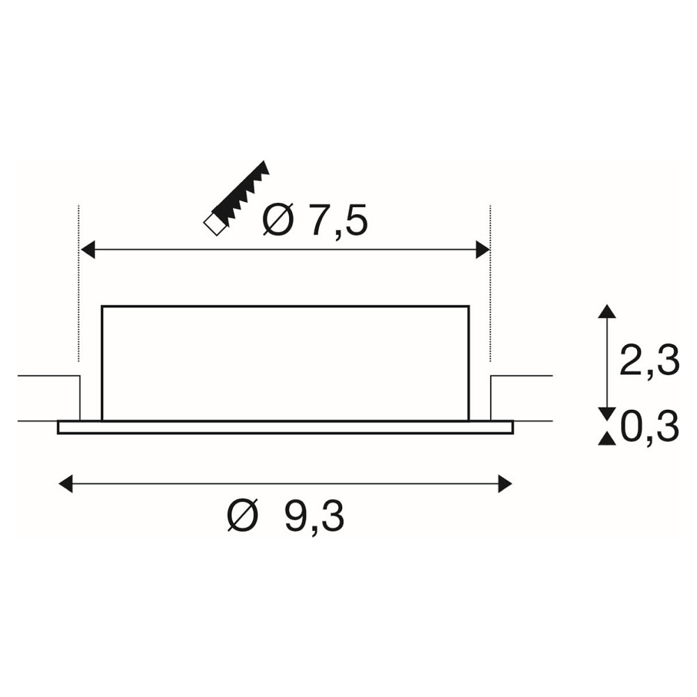 The recessed ceiling light has an operating voltage of 220-240V and a installation depth of 6.5cm. The size is Ø 9.3cm x 2.6cm and the weight is 0.12kg. With an installation opening of 7.5cm and an IP20 protection rating, the light is easy to install and offers sufficient protection against dust and touch.